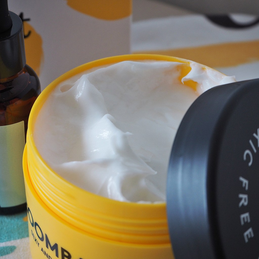 Je commence avec le masque Boombastic. Sa formule unique, riche en acide laurique, linoléique et caroténoïde, pénètre dans la tige capillaire, prévient la perte de protéines et renforce la fibre capillaire. Il contient des composants hydrofuges spécifiques qui bloquent l’humidité de la cuticule en ralentissant les frisottis. Je l’applique généreusement sur les cheveux, des longueurs jusqu’aux pointes, et je les enveloppe ensuite dans le turban anti-frisottis vendu avec, qui aide le masque à pénétrer tout en restructurant vos cheveux en profondeur. Je laisse poser 10 à 30 minutes, juste le temps qu’il faut pour me détendre. Il est l’heure de rincer : Mes cheveux sont profondément nourris, brillant et tout doux. Si vous souhaitez un traitement encore plus intense, laissez-le agir toute la nuit et retirez-le le matin avec beaucoup d’eau. Les résultats sont BLUFFANT!! Son prix : 41€95 (c’est un budget, je vous l’accorde)