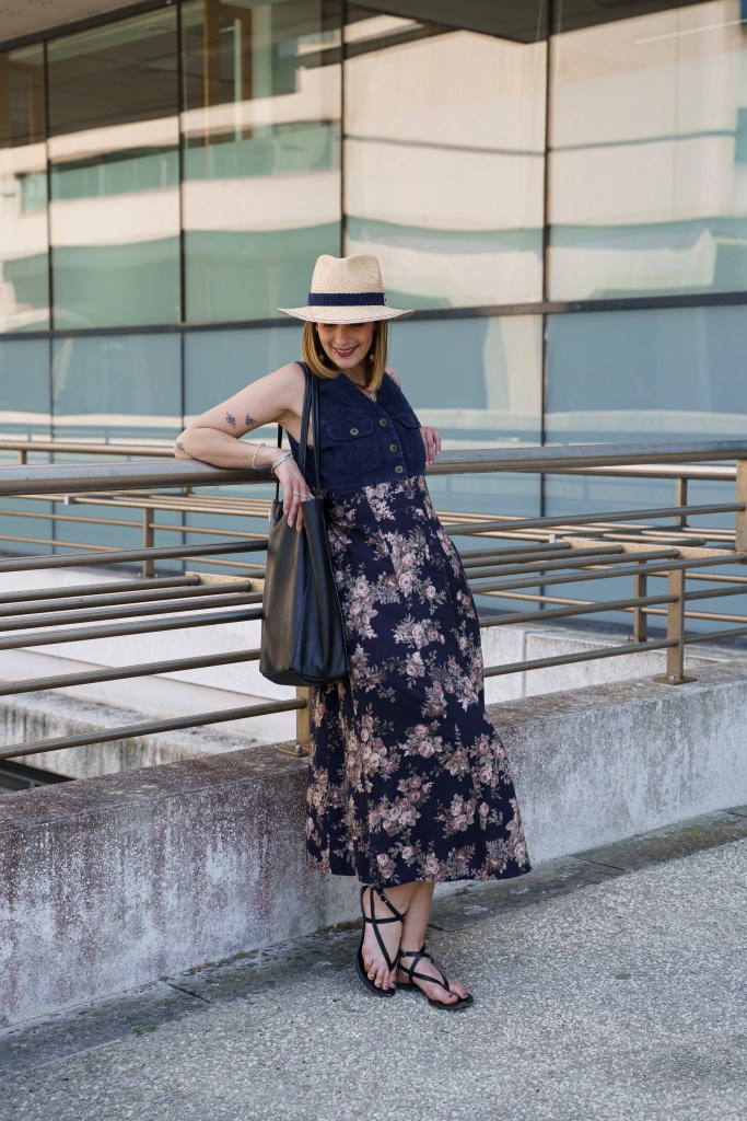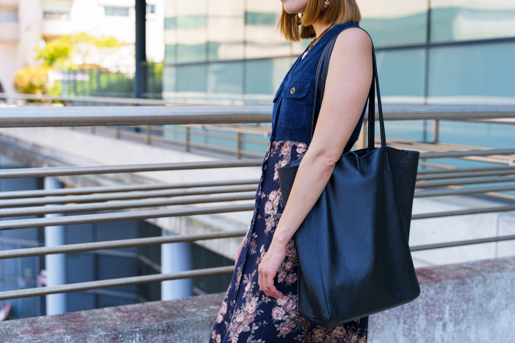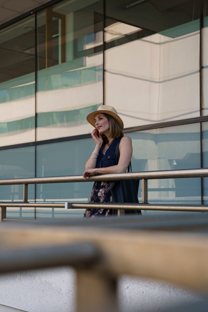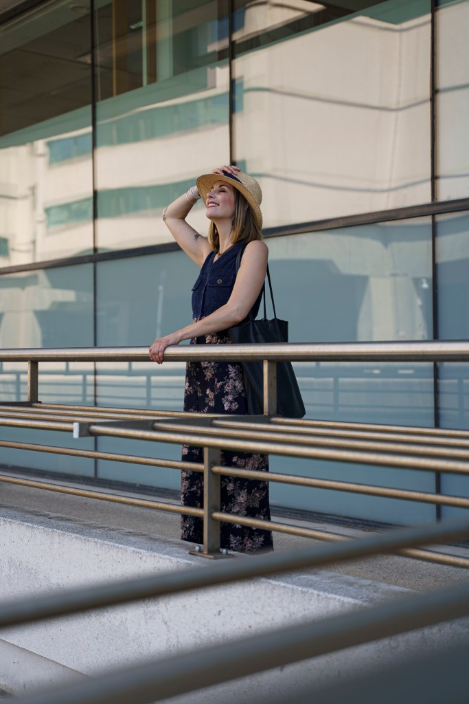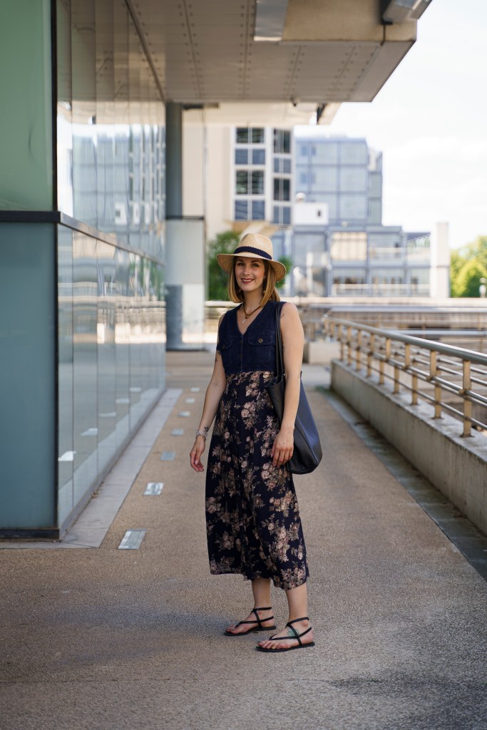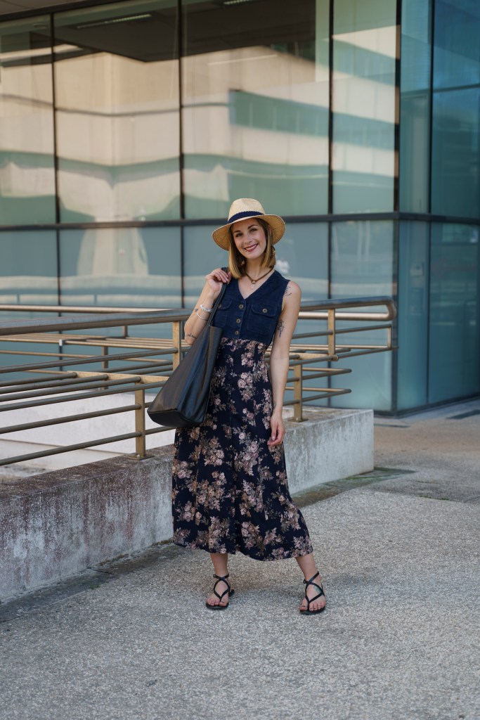 Côté accessoires, je porte encore mon chapeau Panama Gang De Grand-Mères (vous risquez de le voir régulièrement par ici) et voici mon second sac déniché chez Dupond Durand. Cette fois-ci, j’ai opté pour un sac cabas en cuir, et je ne le quitte plus, je le porte quasi au quotidien! J’adore les sacs à main, j’en ai toute une collection mais les sacs cabas ou tote-bag sont de loin mes préférés car tellement pratique! Bref je l’aime d’amour! (En bonus, il sent encore fort l’odeur du cuir neuf, et c’est quelque chose que j’adore!)