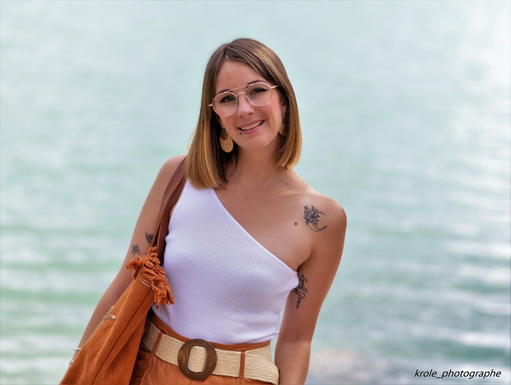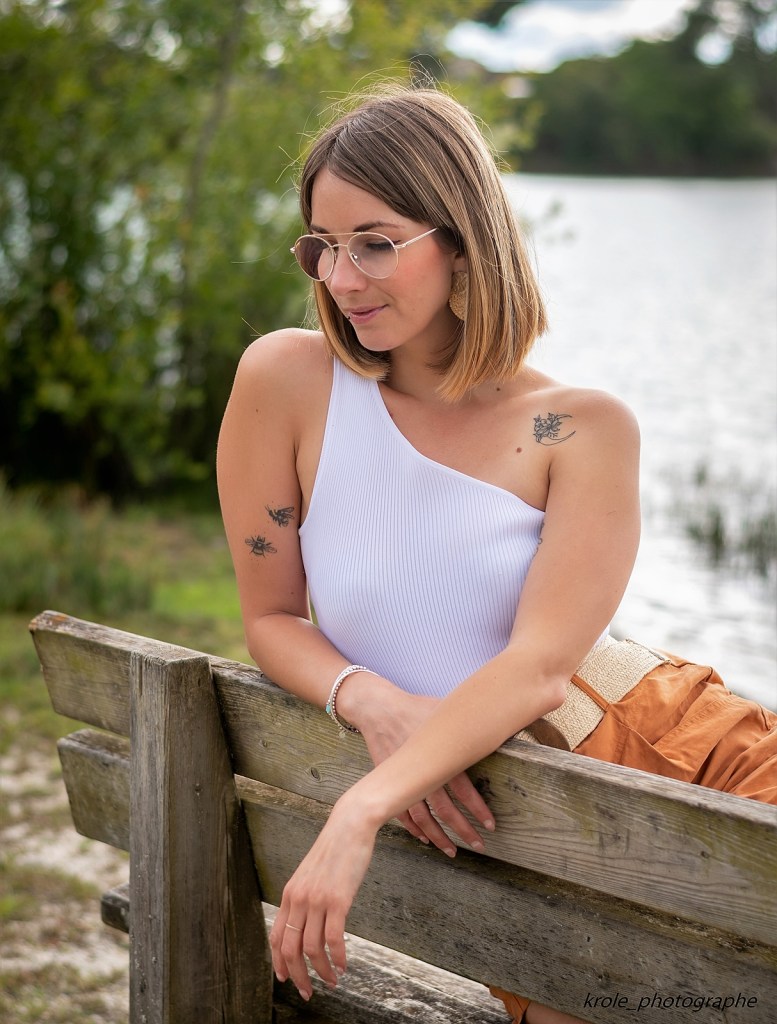 Pour en venir à ma tenue du jour, en ce moment je fais une fixette sur les hauts asymétriques, et tout particulièrement les « one shoulder top », comme celui que je porte aujourd’hui, déniché chez Bershka. J’en ai déjà acheté plusieurs! On ne vas pas se mentir, c’est surtout pour mettre en avant mon tatouage sur l’épaule, que j’aime énormément! Pour le reste de la tenue, mon bermuda est issu d’une ancienne collection de chez Pimkie -déjà vu ici– et mes sandales compensées sont disponibles chez Tamaris, mais elles aussi sont d’une ancienne collection et je vous les ai déjà présentées ici. Je vous l’ai déjà dis, mais le shopping et la mode ne sont aujourd’hui plus ma première priorité, et même si je craque parfois encore sur de nouvelles pièces, je prend aussi beaucoup de plaisir à ressortir les anciennes! Dernier détail de ce look, mon sac AMOUR – disponible sur l’Eshop François Brenot– que je vous ai présenté il y a quelques jours sur Instagram et que vous avez beaucoup aimé! Il ne me quitte plus ! Je l’ai choisi couleur ocre et il va à merveille avec toutes mes tenues, car ce sont des couleurs que je porte beaucoup en été!