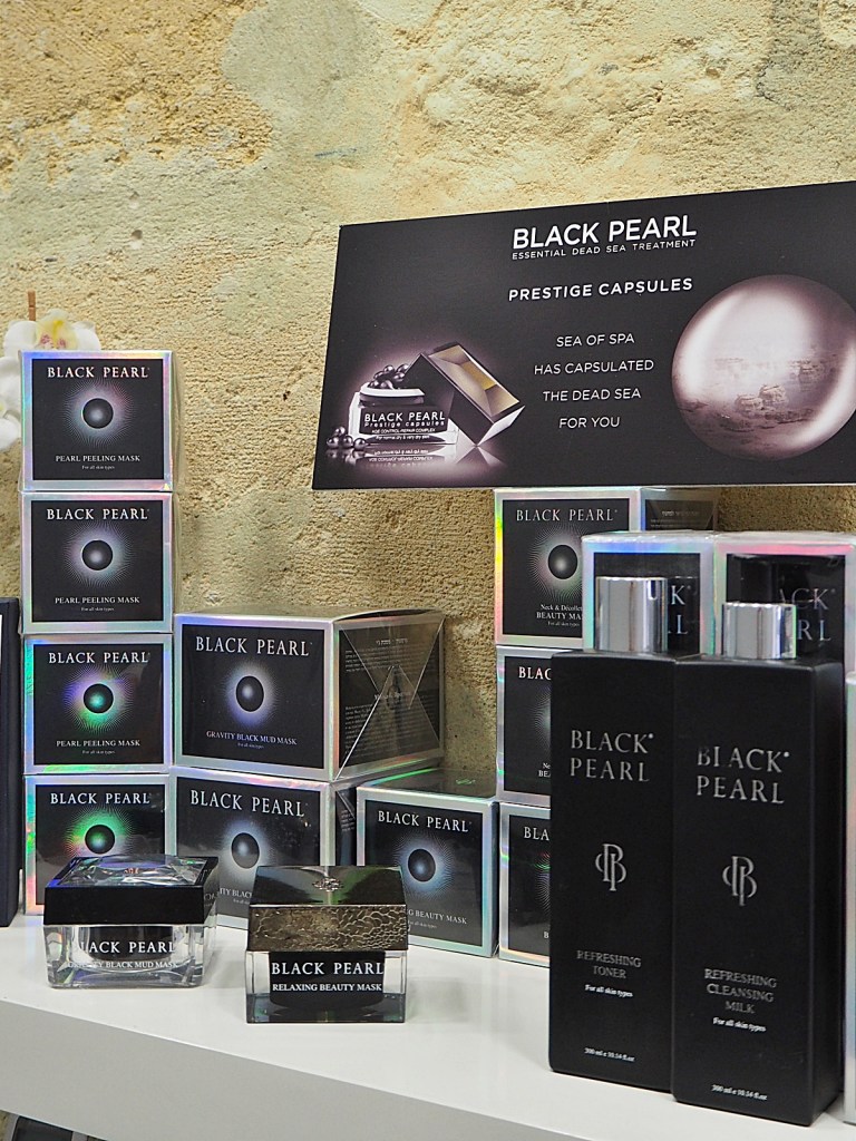 Corinne, la responsable de la boutique, m’a proposé de tester la gamme de soin du visage Black Pearl, qui est la ligne de soin par excellence. Elle agis sur tous les fronts : comblement des rides et ridules, hydratation, unification et éclat du teint, grâce à la poudre de perle noire élément minéral aux multiples pouvoirs. La ligne de produits Black Pearl est une ligne innovatrice contenant un complexe révolutionnaire et exclusif qui contribue à préserver la santé de la peau grâce à ses propriétés anti-âge.