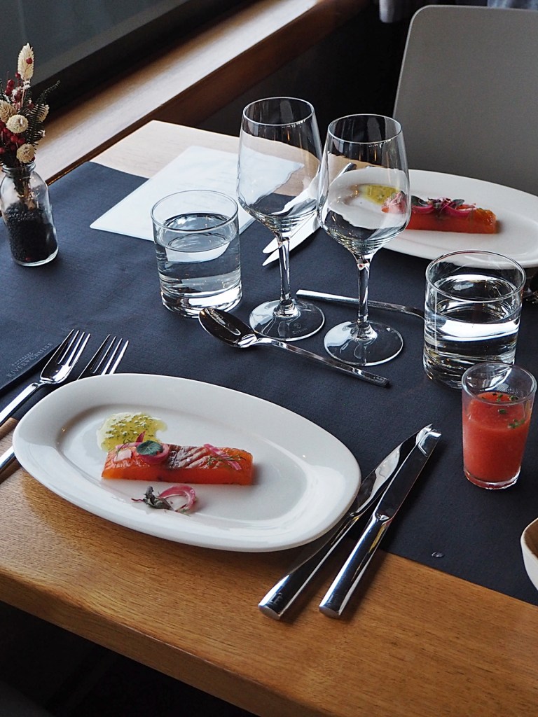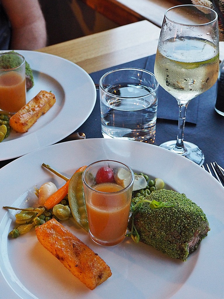 En cuisine, le Chef élabore une carte à base de produits frais et locaux. Tout est cuisiné sur place, sur le pont inférieur du bateau, pendant qu’en salle, sur le pont principal, l’équipe est au petit soin et partage avec nous ses connaissances de la Garonne et de ses rives. Les menus changent en fonction des saisons et de l’approvisionnement auprès des fournisseurs locaux. Nous avons opté pour le Menu Estuaire. En entrée, un Gravlax de saumon accompagné d’un Gaspacho. En plat, nous avons tous les deux opté pour un pavé de veau en croute d’herbe, accompagné d’une polenta et de petits légumes de saison. Pour le dessert -j’en ai encore l’eau à la bouche rien que d’y repenser- j’ai choisi la tarte au citron vert et au basilic (une merveille, ne le dites à personne mais j’en ai repris une part! Renaud, plus sage à lui opté pour un thé-gourmand accompagné d’un fameux cannelé bordelais. Tout était absolument délicieux! Une véritable expérience gourmande et raffinée. Le prix de ce diner-croisière est de 59€, ce qui est vraiment un très bon rapport qualité-prix au vu de la qualité des plats, de la prestation et de la promenade. Ce voyage se savoure lentement…
