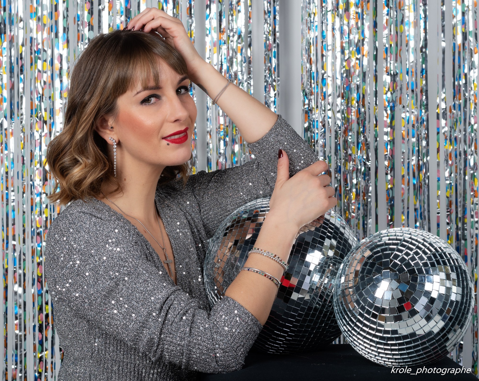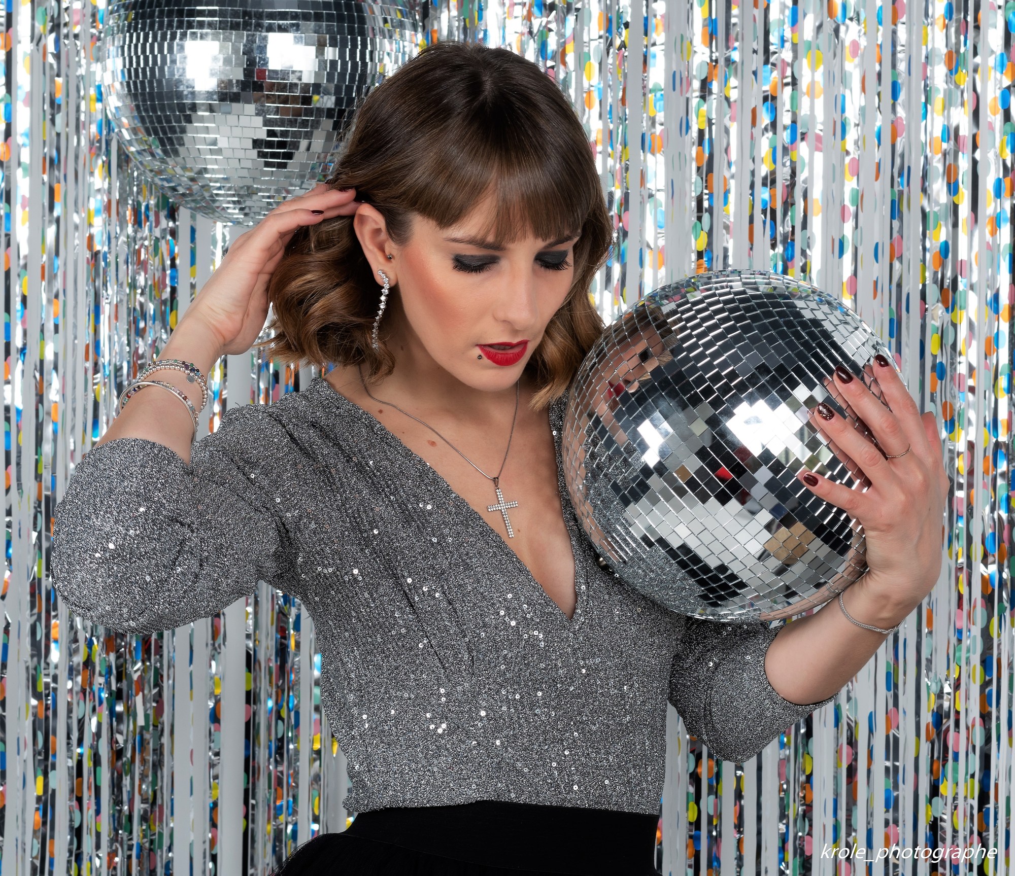 Hello les girls !!! J’espère que vous allez bien ce matin ? Ici en joie ! A l’approche des fêtes il me tardait de briller de 1000 feux et de vous présenter plein de jolies tenues et accessoires festifs ! On commence donc fort avec ce shooting réalisé cette semaine en studio avec Krole photographe ! J’avais des envies de boules à facettes et de sequins, on à donc tout misé sur ce thème !