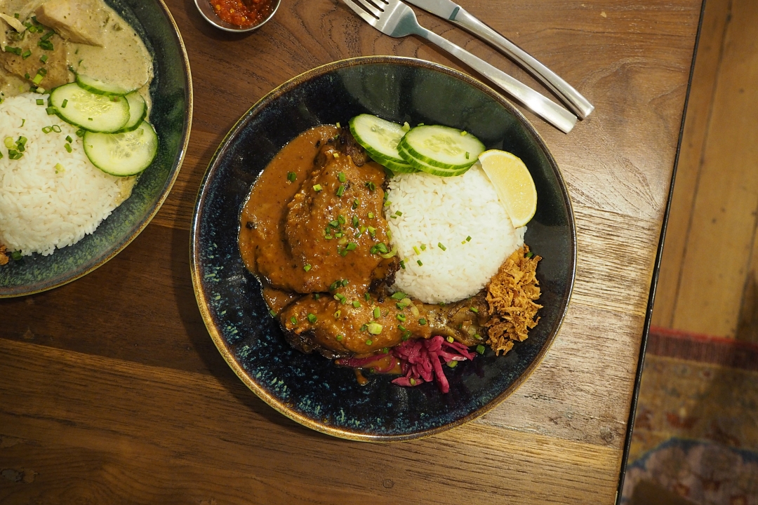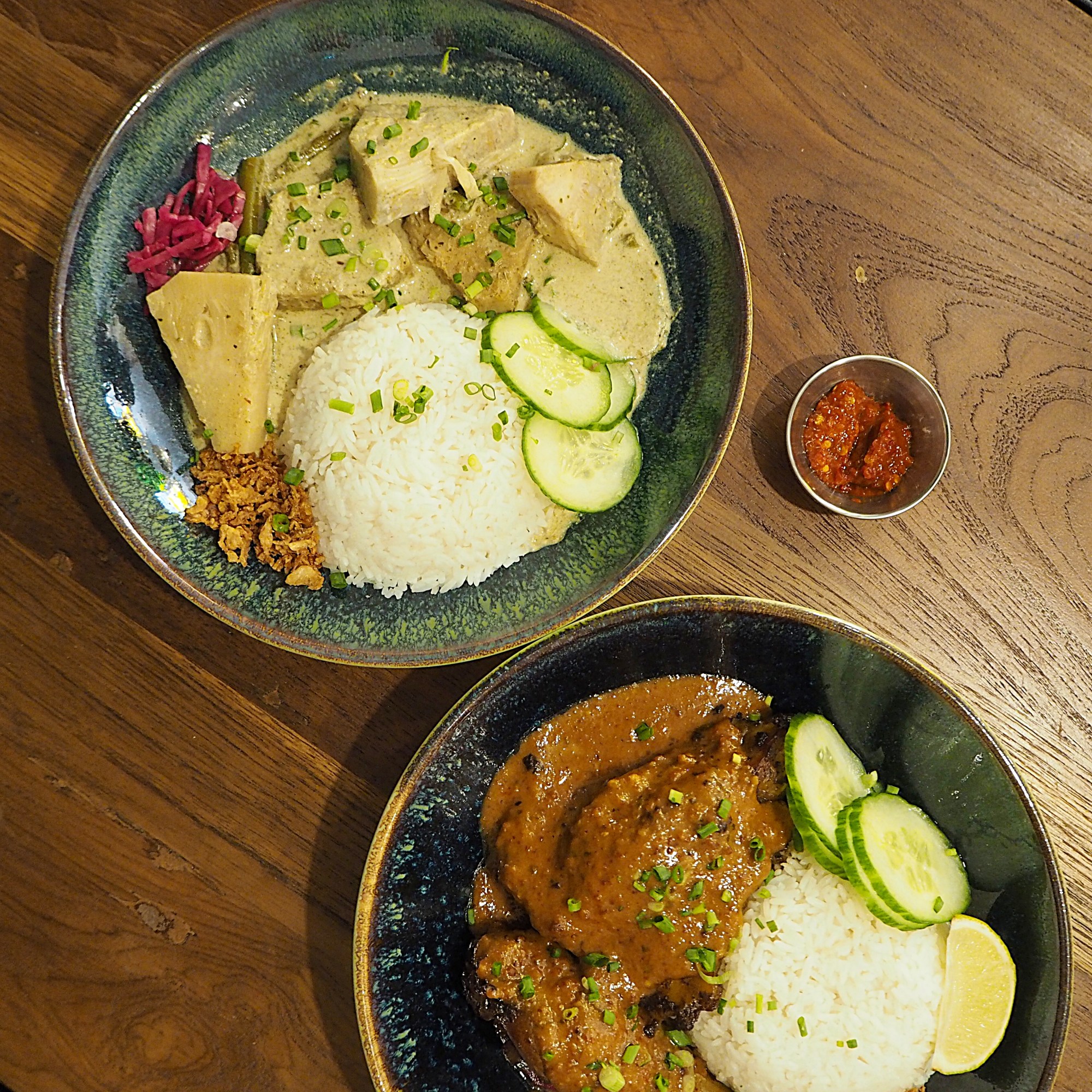 A la carte, des plats chauds et mijotés, sautés au wok, des salad-bowls et de nombreuses options vegan et sans gluten. On retrouve ainsi les grands classiques indonésiens : Satay Ayam Bakar (cuisse de poulet, sauce cacahuète) Déclinaisons de Nasi et Mi goreng (riz et nouilles sautés au wok, sauce kecap manis) Boeuf Rendang (curry au lait de coco et 12 épices) Gado-Gado (salade de légumes, tempeh, sauce satay)