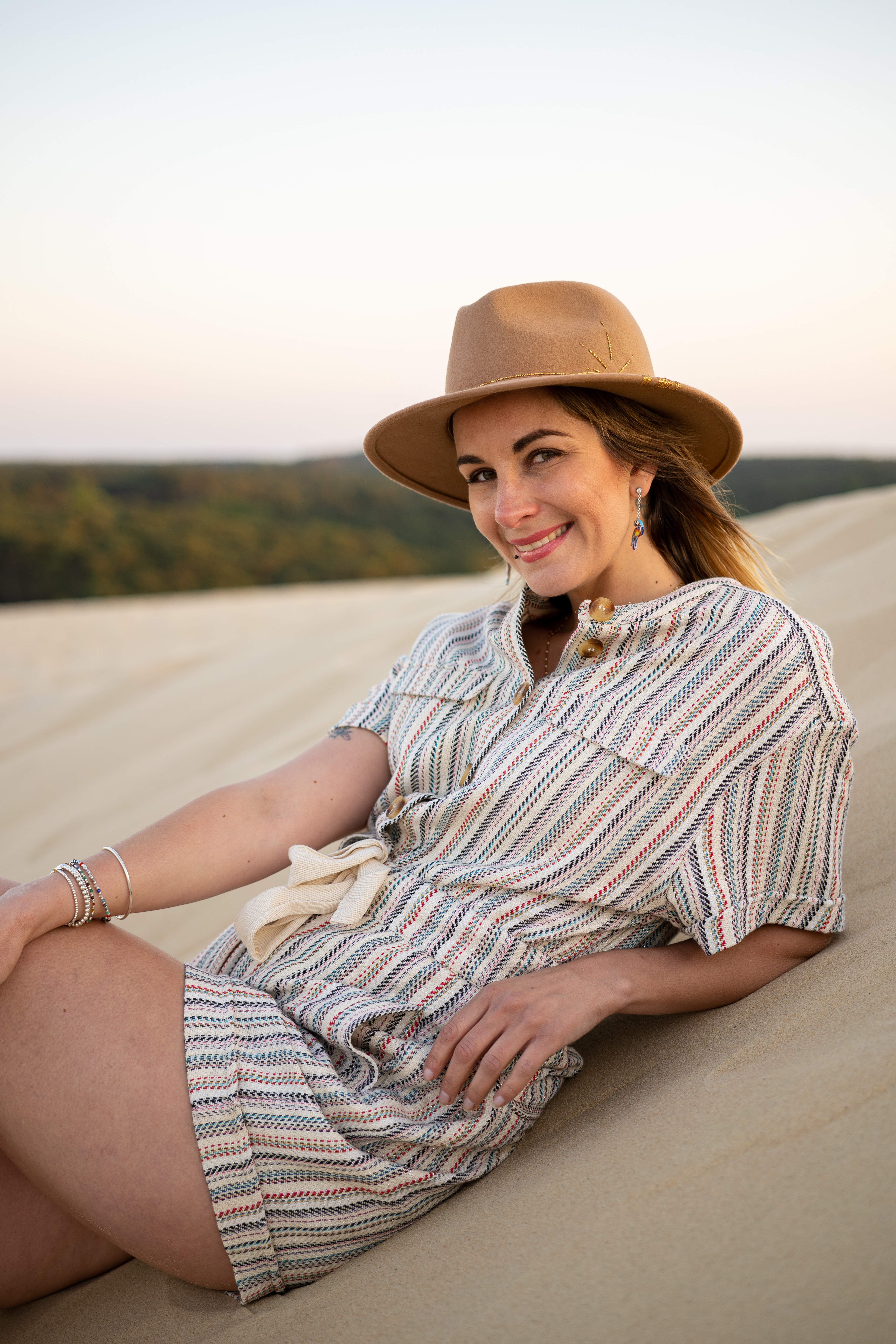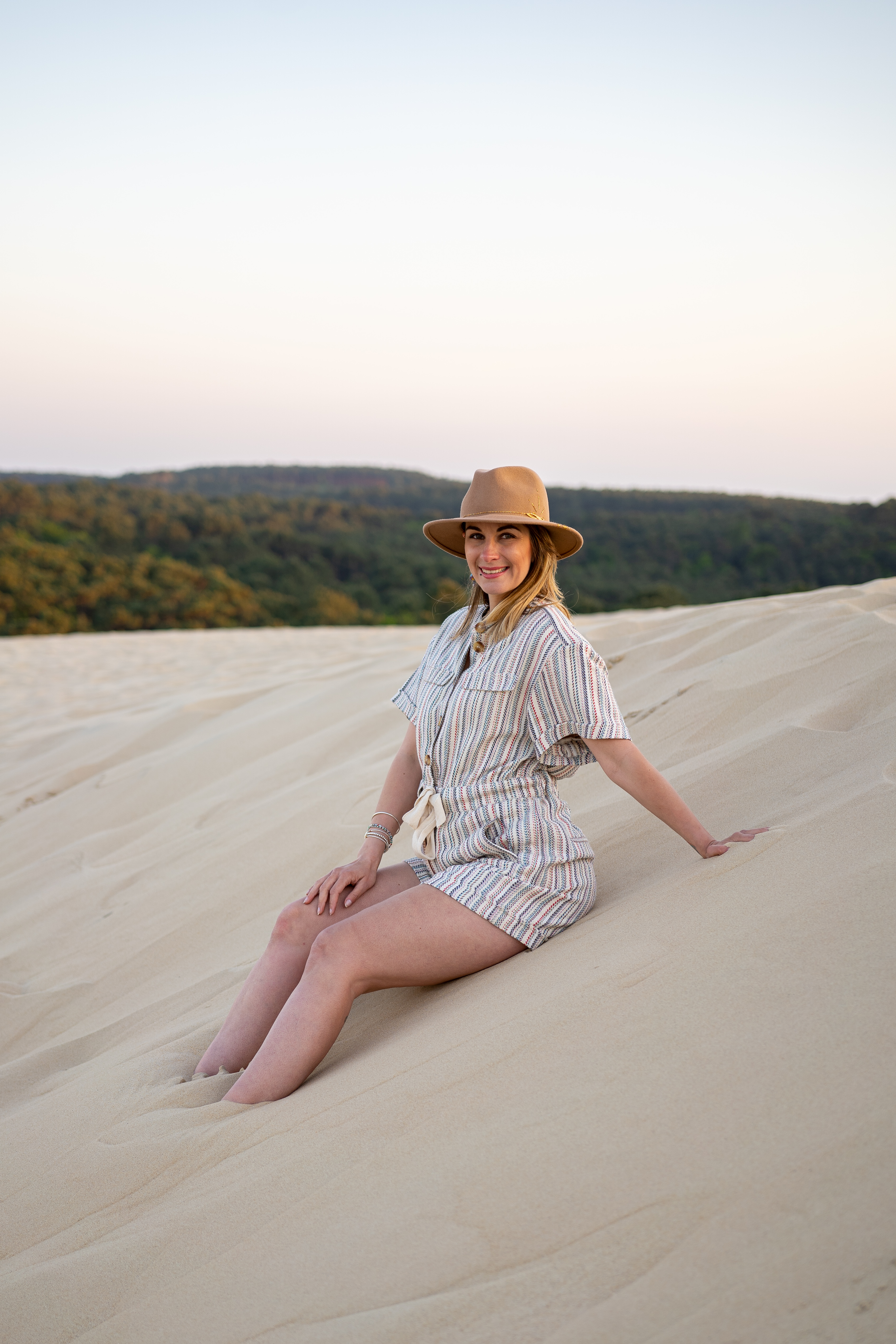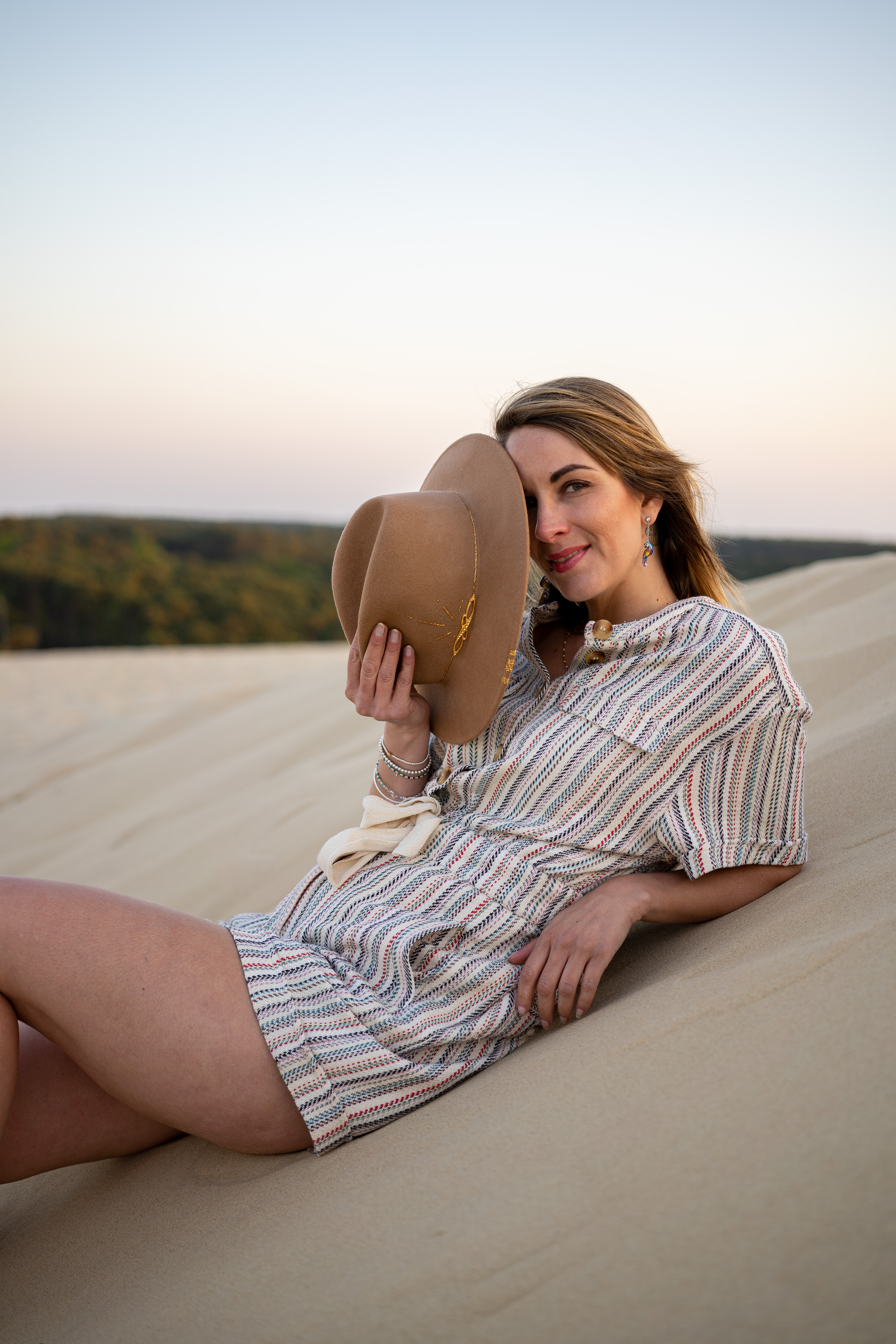 Hello les girls !! Très heureuse de vous retrouver ce matin avec un nouveau LOOK sur le blog et de très chouettes photos prises ce weekend au couché du soleil à la Dune du Pilat ! Nous avons cette chance à Bordeaux d’avoir les Landes et la Dune du Pilat à moins d’une heure de route et c’est une super expérience que de vivre au moins une fois un couché de soleil la haut !! Le paysage et la vue sont incroyables! De là haut, on bénéficie d’une vue exceptionnelle sur le banc d’Arguin et sur le Cap Ferret.