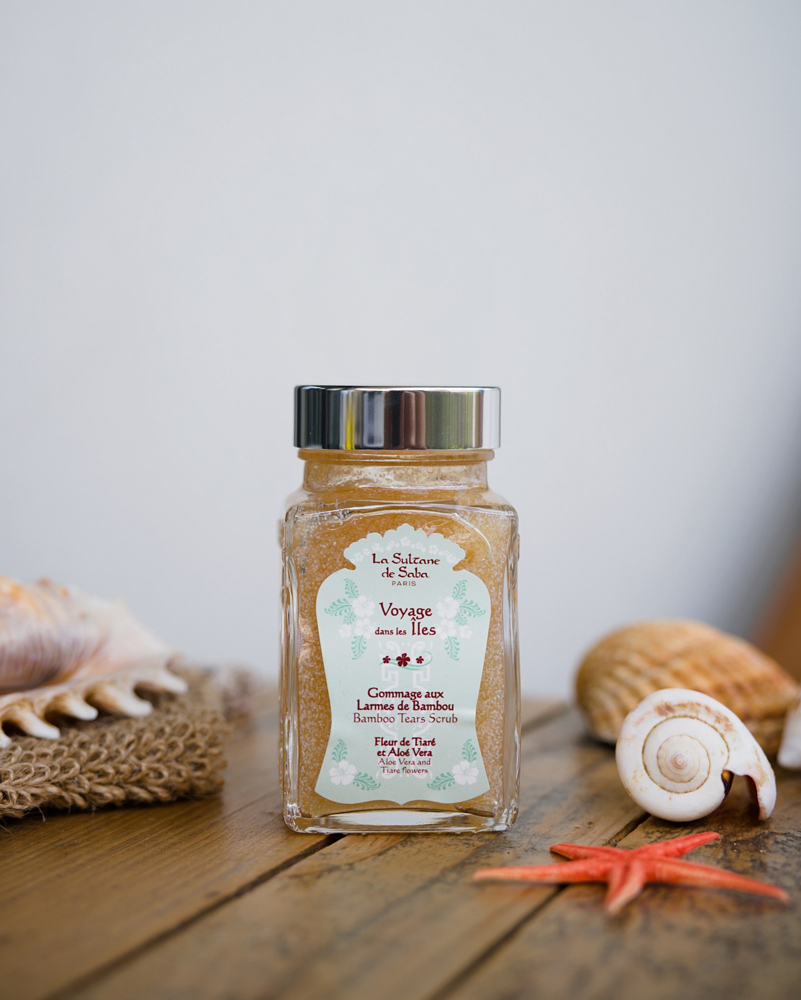 Le gommage a base de larmes de bambous exfoliantes est délicatement parfumé et laisse la peau souple et scintillante! Il s’utilise sur le corps sous la douche en légers massages circulaires. Vous ne vous serez jamais autant sentie en vacances qu’avec ce gommage! L’odeur et encore une fois DIVINE !
