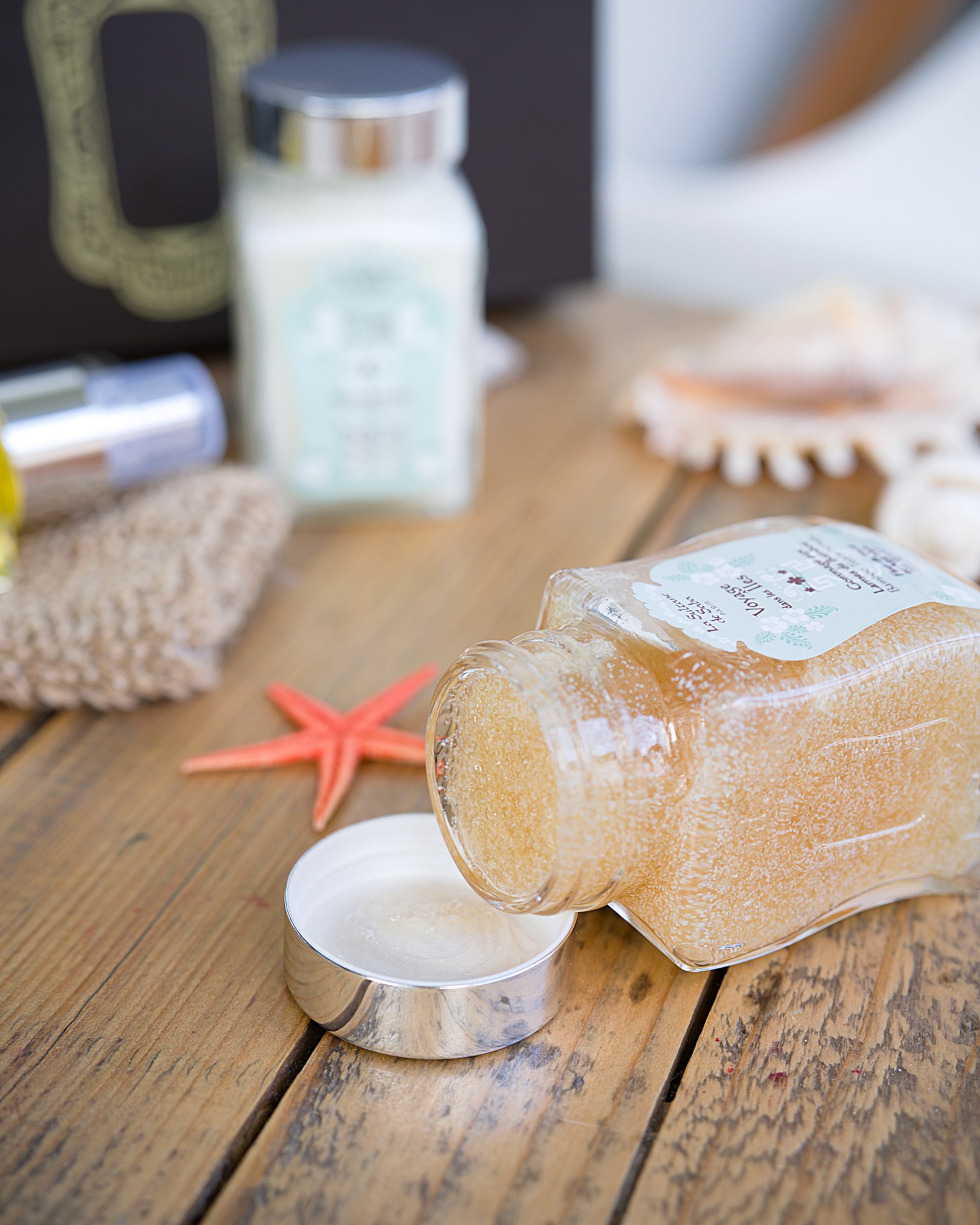 Comme d’habitude les packagings sont magnifiques, et comme je pars prochainement en vacances, j’ai opté pour des produits en plus petit format (50 ml et 100ml) plus pratique pour voyager! Le coffret contient une huile pour le corps, un gommage et un beurre de karité. Débriefing !