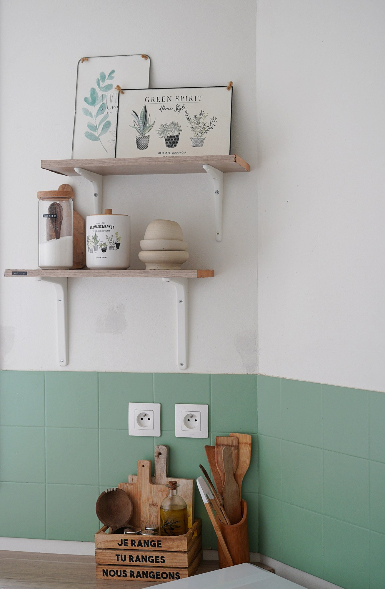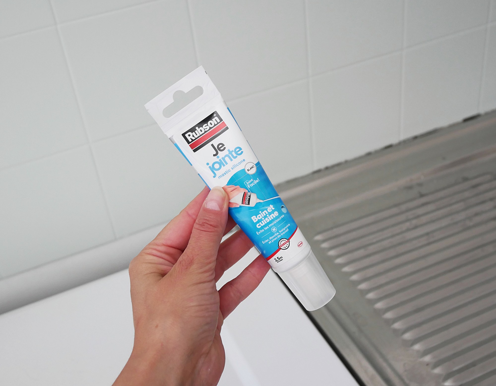 Souvenez-vous il y a deux ans j’avais déjà repeint la crédence en vert, mais pour être très honnête, je m’en suis rapidement lassé, trouvant la couleur trop sombre. Cette fois çi, j’ai donc opté pour un vert clair, très doux, que j’ai fait faire sur mesure chez Bricorama. J’ai d’abord commencé par bien dégraisser la surface à peindre avec de l’alcool ménager. Ensuite, place à la peinture ! Ce vert est magnifique et apporte une touche de fraîcheur et de modernité à la cuisine. Le contraste avec les murs blancs est juste parfait ! Je termine par refaire le joint d’étanchéité de l’évier avec un gel prêt à l’emploi et tadam, c’est terminé ! Petit tips pour un joint parfait : on ne « pousse » pas la matière, on la « tire » vers soi et pour un rendu parfaitement lisse, il vous suffit de mouiller votre doigt avec de l’eau savonneuse et de le passer sur le joint. Ce geste doit être exécuté en une seule fois.
