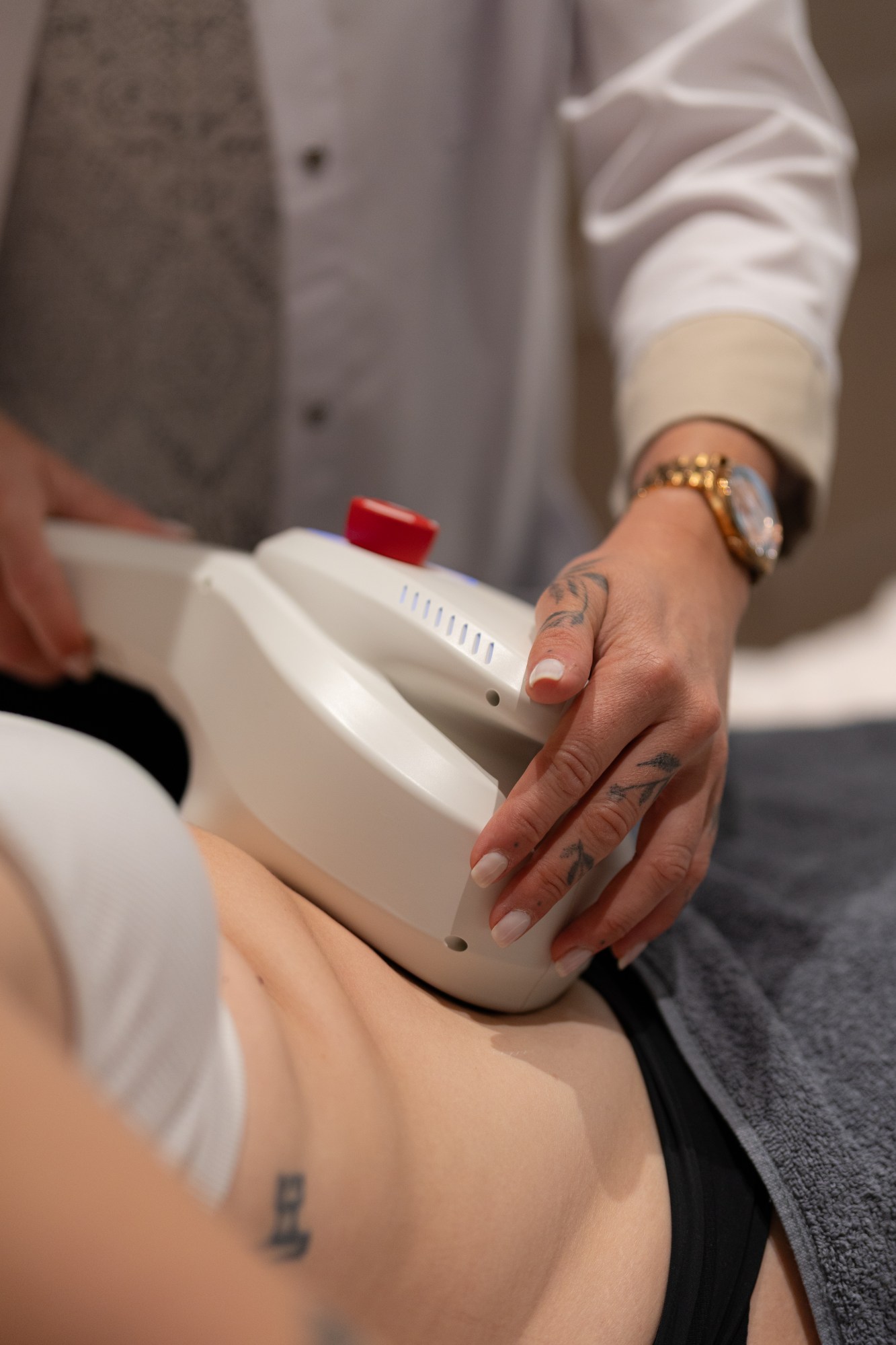 Tout commence par une consultation avec la praticienne. Elle m’explique le déroulé de la séance et vérifie les éventuelles contre-indications (stimulateur cardiaque, grossesse, cancer, maladie aiguë, diabète grave, âge avancé, grande fragilité, etc.) Dans mon cas, tout était ok, et j’ai choisi de traiter le bas-ventre, une zone qui me complexait depuis plusieurs mois.